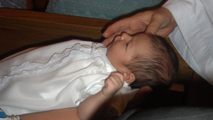 « Le premier geste, […] c’est le signe de la croix, qui nous est donné comme bouclier qui doit protéger cet enfant dans sa vie ; c’est comme un « indicateur » pour le chemin de la vie, parce que la croix est le résumé de la vie de Jésus. Puis il y a les éléments : l’eau, l’onction avec l’huile, le vêtement blanc et la flamme du cierge. L’eau est le symbole de la vie : le Baptême est une vie nouvelle dans le Christ. L’huile est le symbole de la force, de la santé, de la beauté, parce qu’il est vraiment beau de vivre en communion avec le Christ. Puis le vêtement blanc, comme expression de la culture de la beauté, de la culture de la vie. Et enfin, la flamme du cierge, comme expression de la vérité qui resplendit dans les ténèbres de l’histoire et nous indique qui nous sommes, d’où nous venons et où nous devons aller » (Benoît XVI, Homélie, 10 janvier 2006). Dans l’Ancien Testament, l’eau est à la fois symbole de destruction et de création. Les eaux primordiales ou primitives du moment de la Création, avec l’esprit qui plane sur elles, symbolisent le baptême : « L’Esprit de Dieu était porté sur les eaux, lui qui devait recréer les baptisés. Le Saint était porté sur ce qui était saint, ou plutôt ce qui portait recevait la sainteté de celui qui était porté. C’est ainsi que la nature des eaux, sanctifiées par l’Esprit, a reçu d’être à son tour sanctificatrice. C’est pourquoi toutes les eaux, du fait de leur antique prérogative originelle, obtiennent le sacrement de la sanctification, par l’invocation de Dieu » (Tertullien, De Baptismo 2).