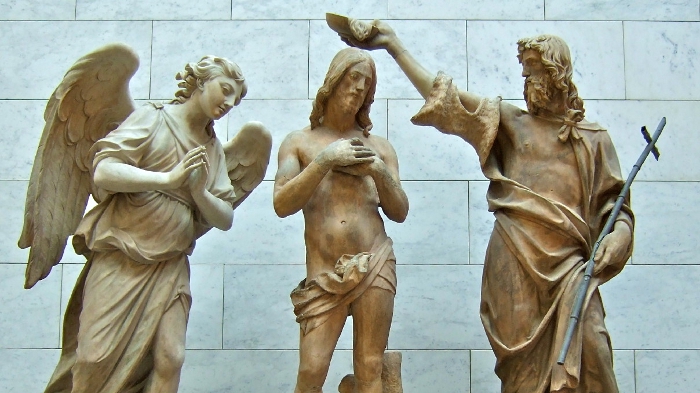 D’autre part, les Pères de l’Église ont trouvé dans le Cantique des cantiques l’annonce des trois sacrements de l’initiation. Le baptême y apparaît comme une participation à l’Ascension du Christ au-dessus des chœurs angéliques : « Les anges vous entoureront de leurs chœurs, est-il dit aux baptisés, et ils diront : Qui est celle qui monte, vêtue de blanc, appuyée sur son Bien-Aimé ? » (saint Cyrille d’Alexandrie, Catéchèses mystagogiques, PG 33, 448B). Il est présenté aussi comme un mystère nuptial : l’âme, jusqu’ici simple créature, devient l’épouse du Christ : « Celle qui auparavant était servante reçoit maintenant le Seigneur même pour bien-aimé. Et celui-ci, recevant l’engagement sincère de son âme dit : Tu es belle, ma bien-aimée, tu es belle » (saint Cyrille d’Alexandrie, Ibid.).